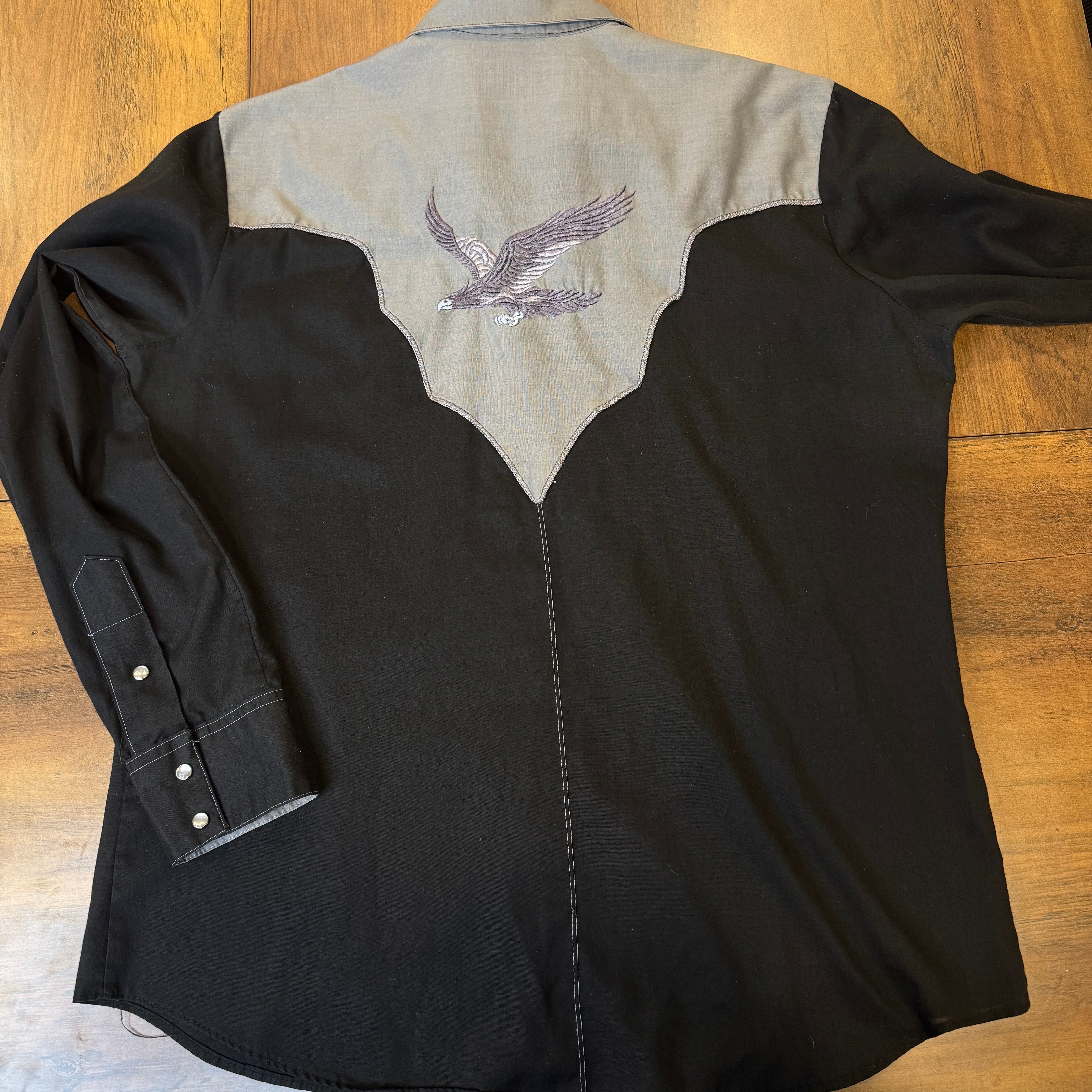 70s Rockmount Ranch Wear Pearl Snap Button Down w Embroidered Eagle Size Med